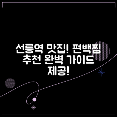 위 맛집 목록을 참고하셔서 선릉역 지역에서 최고의 편백찜을 즐겨보세요.