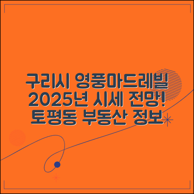 안녕하세요, 부동산 투자에 관심이 많은 여러분! 오늘은 경기도 구리시 토평동 영풍마드레빌2차 아파트의 시세와 함께, 향후 투자 전략에 대해 이야기해볼까 합니다. 이 아파트는 2025년 12월에도 유망한 투자처가 될 것으로 보이는데요. 그러면 어떤 전략을 통해 최고의 투자 성과를 이끌어낼 수 있을까요?