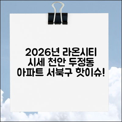 충청남도 천안시 서북구 두정동 라온시티(도시형) 아파트에 대한 투자 수익률을 전망하는 단계별 가이드를 제공합니다. 이 가이드는 2026년 1월 시세 분석을 통해 투자 결정을 돕는 것이 목표입니다.