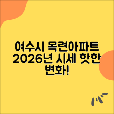 전라남도 여수시 소호동 목련 아파트의 2026년 시세 전망은 다각적인 분석이 요구됩니다. 특히 최근 매매 및 전세 시세의 변화는 더욱 세심하게 살펴보아야 합니다.